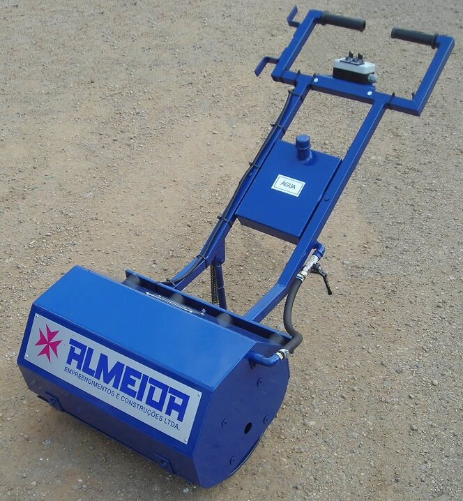 O rolo vibratório manual da ALMEIDA tem acionamento elétrico, e é equipado com dispositivo de regulagem para três posições de vibração que podem ser alternados durante a operação. Dispõe também de reservatório de água para umedecer o tambor externamente; haste de acionamento desenvolvido para oferecer melhor conforto ao operador durante a operação de compactação; e coxins instalados em pontos corretamente localizados, para propiciar maior conforto ao operador. Para acionamento do rolo é necessário um gerador elétrico (opcional).